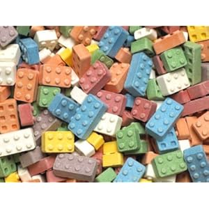 Lego blox uncoated candy. Approx: 800 blox in the 5.5 lb. bag. Have a fun time building using these edible legos. When you find yourself done playing using these legos, instead of putting them away, you can eat them!